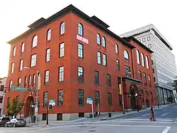The Odd Fellows Hall in Baltimore, Maryland, United States, is a historic building that was the meeting place of the Independent Order of Odd Fellows fraternal organization, and is now an apartment building. It was built in 1891 and is a five bay structure featuring a central arched entrance with brownstone Romanesque columns and architraves. In the late 1970s, an adaptive reuse project retained most of its exterior architectural character while providing modern office space in the renovated interior.[2]