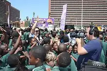 The promotional Odyssey 2050 comic book was released in March 2012 in London and was sponsored by Artists' Project Earth, a UK registered charity.[3] One of the objectives of Odyssey 2050 is to reach out to young people from across the world, and especially marginalized and vulnerable groups who often don't have access to electricity, computers and DVD players. The comic book enables young people in areas of limited technology and financial resources to be introduced to the project and have fun while they learn about climate change and the need to take action on it. The comic has been distributed across schools in remote and neglected parts of Latin America's poorest country, Nicaragua. The Odyssey 2050 association works in partnership with the Caribbean Coast Catholic Church coordinators that run schools for 17,000 young Nicaraguans and ensure that the comics are used well by the schools and complement existing environmental education programmes.[4]