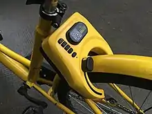 Customers use the company's mobile app on their smartphones to locate nearby bicycles. Each bike has a QR code on the frame, which the customer scans to unlock the bike. Ofo bike unlocking is also available on other collaborative apps such as WeChat and Alipay in Mainland China.[58] Each yellow bicycle reports its location via satellite positioning, allowing users to see which bikes are available nearby. Users pay within the app using available payment methods such as credit cards, WeChat Pay or Alipay in China, etc. After customers are finished, they can leave the bike anywhere and lock it. The bicycles use NarrowBand IOT to power the locks, developed by Huawei and China Telecom.[59]