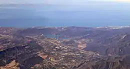 Ojai (/ˈoʊhaɪ/ ⓘ OH-hy; Chumash: ’Awhaỳ)[10] is a city in Ventura County, California. Located in the Ojai Valley, it is northwest of Los Angeles and east of Santa Barbara. The valley is part of the east–west trending Western Transverse Ranges and is about 10 miles (16 km) long by 3 miles (5 km) wide and divided into a lower and an upper valley, each of similar size, surrounded by hills and mountains. The population was 7,637 at the 2020 census, up from 7,461 at the 2010 census.