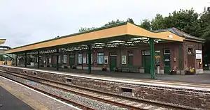 Okehampton railway station is a terminus railway station on the Dartmoor line serving the town of Okehampton in Devon, England. The station closed to regular traffic in 1972, but heritage and occasional mainline services ran from 1997 to 2019. Regular railway services resumed in November 2021.