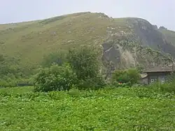 Okladnikov Cave (Russian: пещера Окладникова) is a paleoanthropological site located in the foothills of the Altai Mountains in Soloneshensky District, Altai Krai in southern Siberia, Russia. The cave faces south and is located on a Devonian karst escarpment, lying about 14 metres (46 ft) above the left bank of the Sibiryachikha River valley below; the river itself is a tributary of the Anuy River.[2][3]