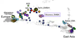 - ↑ "Афанасьевская и окуневская археологические культуры Южной Сибири генетически различны | Генофонд РФ" [Afanasyevskaya and Okunevskaya archaeological cultures of South Siberia are genetically different | RF gene pool] (in Russian). Retrieved 2022-12-21.