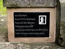 ![]() Memorial granite plaque in Osvětimany dedicated to the memory of Oldřich Pechal | |