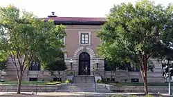 The Old Post Office is a historic former post office building on Convention Boulevard in Hot Springs, Arkansas. It is a steel and masonry structure, two stories in height, finished in brick and stone, with Renaissance Revival styling. Its main facade is five bays wide, with a center entrance set in a round-arch entrance with an elaborate keystone. The interior lobby area has its original red marble finish, with quartersawn oak trim. The former post office was built in 1901, and is one of the city's best examples of Renaissance Revival architecture.[2]