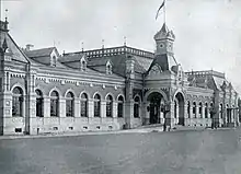 The old station building (Russian: Старый вокзал, tr. Stary vokzal) is an edifice in the Zheleznodorozhny District of Yekaterinburg, Russia. The house is located at 14 Vokzalnaya Street (Russian: Вокзальная улица, 14) It was a main station building between 1878 and 1914. The building was designed in the Russian Revival style. It is recognized as a historical landmark, has official status as an object of Russian cultural heritage, and contains the museum of History & Engineering science of the Sverdlovsk Railway.[1]