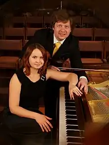 In 2005 together with the pianist Natalia Bezuglova he formed the Instrumental Duo Class&Jazz. The ensemble repertoire combines classical music pieces with jazz masterpieces.[5] The group became a winner of several International Competitions in classical music including the First Prize at the 1st Dmitri Shostakovitch International Competition of Chamber Ensembles and Piano Duos (Moscow, Russia 2008);[6][7][8] and the Third Prize and Bronze Medal at the 7th International Chamber Music Ensemble Competition in New England (Boston, MA 2016).[3] Class&Jazz has performed at manymusic festivals worldwide, including 16th International Brahms Festival in Pörtschach am Wörthersee (Austria, 2009), 3rd Festival of Contemporary Music "Rostov Premieres" (Russia, 2006),[9] Moscow musical festival of forum "Klassika" (Russia, 2009),[10] and 4th International Festival "Odesa Dialogues" (Ukraine, 2009).[11][12] In 2009 the duo started the chamber music festival "Christmas Premieres" in their native city of Rostov-on-Don, Russia.[13][14][15] They were the authors and performers of the original concert project Music and War, which premiered in Russia in 2009.[16][17] Class&Jazz Duo produced two CD-albums. Their recording of Shostakovich and Beethoven violin and piano sonatas, published in September 2013, was critically acclaimed by Phoenix Classical for “excellent performance – very expressive and emotive – precise intonation and technique – great balance with the piano – deeply poetic playing”.[2]