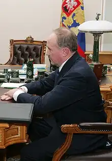 In 1982 he graduated from the Border Guards Higher School of the KGB in Moscow and subsequently served for the KGB until 1991. It is sometimes claimed that for some time he served in Dresden together with Vladimir Putin.[2] In 1991-1994 he worked under Vladimir Putin in the Committee for the External Relations of the Saint Petersburg Mayor's Office. From November 14, 1996, to October 30, 2007, Safonov was a deputy Interior Minister of Russia, appointed by President Putin. On October 30, 2007, Vladimir Putin appointed him plenipotentiary envoy to the Far Eastern Federal District.[3] Safonov was believed to be married to a daughter of Viktor Ivanov. However, in April 2009, an article indicated that Oleg Safonov's wife was named Lyudmila Gennadayevna. An alternate theory is that the Safonovs' daughter, Elizabeta, is married to Viktor Ivanov's son, Yaroslav.[4]