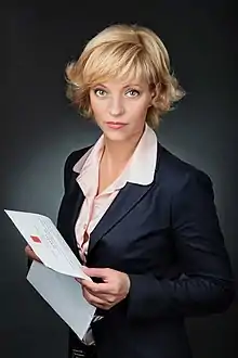 Olga Kazakova (Russian: Ольга Михайловна Казакова; born May 30, 1968, in the city of Usolye-Sibirskoye, in the Soviet Union) is a Russian politician, was the Minister of Culture of the Stavropol Krai, since 2012, deputy of the State Duma, First Deputy Chairman of the Committee on Culture.[1]