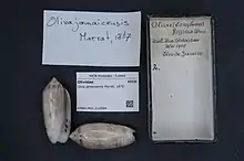 - ↑ Oliva jamaicensis Marrat, 1870. Retrieved through: World Register of Marine Species on 28 April 2010.