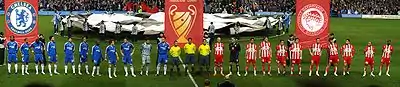 In the 2007–08 UEFA Champions League, Olympiacos had an exceptional European campaign. Drawn in one of the toughest groups of the tournament along with Real Madrid, Werder Bremen and Lazio, Olympiacos finished second with eleven points, the same with group-winners Real Madrid, with the Spanish club taking the top place due to the better results in the two Olympiacos–Real Madrid matches. Following a draw 1–1 to Lazio at home, Olympiacos grabbed a spectacular 3–1 away win against Werder Bremen in Weserstadion, turning the game around from 0–1. In the third game, Olympiacos were finally defeated 4–2 to Real Madrid at the Santiago Bernabéu Stadium, after a heart-breaking match in which the Greek team was playing with 10 men from the 13th minute and was leading the score to the 68th with 2–1, turning it around from 0–1 and wasting a lot of chances to score more. Real Madrid scored their third goal in the 83rd, but Olympiacos came close to score many times during the last minutes of the match and leave Madrid with the draw, when Real secured the win with a last-minute goal, following an outstanding Olympiacos chance to equalise the score, with Iker Casillas saving Darko Kovačević's powerful header from close. Olympiacos opened the second round of the group stage with a draw 0–0 to Real Madrid at the Karaiskakis Stadium and kept alive the record of being undefeated by Real Madrid in Athens in four matches, while the Reds moved a step closer to qualifying for the Last 16 after coming from behind to defeat Lazio 2–1 in Stadio Olimpico. On 11 December, Olympiacos smashed Werder Bremen 3–0 at Karaiskakis Stadium, which ensured their place in the knockout stage of the tournament, where they faced Chelsea. At the first match in Piraeus, the Reds had a scoreless draw against the Blues, but were eliminated in the second leg at the Stamford Bridge after their 3–0 loss.[12]