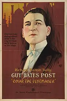 Omar the Tentmaker is a 1922 American silent drama film directed by James Young and featuring Guy Bates Post, Nigel de Brulier, Virginia Brown Faire, Noah Beery Sr., Patsy Ruth Miller, and Boris Karloff.[2] It was produced and adapted by Richard Walton Tully from his own 1914 Broadway play Omar the Tentmaker.[1] The film's tagline was "Would You Know How Omar Loved? Would you sweep 1,000 years aside to find Shireen, the Persian Rose, who wed Omar and awoke in the harem of the Shah?" (Print Ad in the Albuquerque Herald, (Albuquerque NM)) 24 May 1923). The film is considered a lost film.[2]
