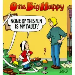 One Big Happy is an American daily comic strip written and illustrated by Rick Detorie, detailing the daily adventures of a six-year-old girl named Ruthie. The strip also features her eight-year-old brother Joe, their parents Frank and Ellen, and their grandparents Nick and Rose, who live next door. The strip's title is a takeoff on the phrase "One big happy family." It debuted on September 11, 1988. The strip takes place on Buena Vista Avenue in an unspecified city based on Baltimore, Maryland, where the creator grew up. It is syndicated by Creators Syndicate.[1]