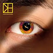 One Fine Day was initially released in two editions: version A showcases Jung in a sunlit setting, while version B depicts him against a dark background.[22] Conceptually, the album photos "express the pains of separating in opposite ways".[22] Both versions are encased in a hard cover, which include an 80-page photobook, one of four possible random photo cards, and one poster.[27][28] The artwork for the special edition of One Fine Day was designed by art collective StormStudios, its first time working with a South Korean musician.[29] The designers originally planned to use the eye of a woman for the cover art, but were persuaded to use Jung's instead, under the basis that "such an intimate close up would make a paradoxically anonymous portrait shot".[26] The cover shows a close-up of Jung's eye, with a falling girl shown in his pupil. Art director Dan Abbott explained that the cover art was influenced by the "great themes of loneliness, romance, and memories" explored on the album.[29] It includes 14-page photobook and a poster.[30]