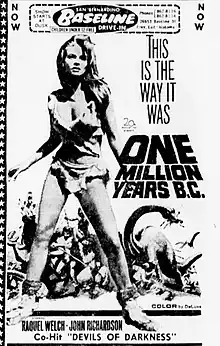 One Million Years B.C. is a 1966 British adventure fantasy film directed by Don Chaffey. The film was produced by Hammer Film Productions and Seven Arts, and is a remake of the 1940 American fantasy film One Million B.C.. The film stars Raquel Welch and John Richardson, set in a fictional age of cavemen and dinosaurs coexisting together. Location scenes were filmed on the Canary Islands in the middle of winter, in late 1965. The UK release prints of this film were printed in dye transfer Technicolor. The U.S. version released by 20th Century Fox was cut by nine minutes,[3] printed in DeLuxe Color, and released in 1967.[4]