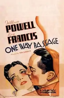 One Way Passage is a 1932 American pre-Code romantic film starring William Powell and Kay Francis as star-crossed lovers, directed by Tay Garnett and released by Warner Bros. The screenplay by Wilson Mizner and Joseph Jackson is based on a story by Robert Lord, who won the Academy Award for Best Story.[4]
