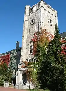 The War Memorial Hall is a landmark building built in June 1924 as a lecture hall or theatre at the Ontario Agricultural College to honour students who had enlisted and died in the First World War, and in the Second World War. Two bronze tablets in the Memorial Chapel remembers alumni who have died during these wars.[2]