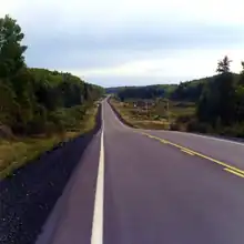 The Trans-Canada Highway Act was passed in 1950 and provided the impetus to construct Highway 17 around Lake Superior, which was carried out over the course of the decade.[11] This resulted in the planning of a new road to connect Highway 11 with Highway 17; it was decided that Highway 101 would be extended west as the new connector highway. In order to accommodate this future extension, the section of Highway 67 between Timmins and Hoyle was renumbered as Highway 101 in mid-1955.[12][13] On September 1, 1955, the route was extended west of Timmins to Warren Lake.[14] West of Warren Lake, Highway 616 and Highway 624 continued to the CNR stop in Foleyet; these would soon become part of Highway 101.[15] Highway 101 was opened to the Quebec border in December 1958 with the completion of the final 11.6 km (7.2 mi) gap. In addition, work began on December 18 to clear the route of the Foleyet to Chapleau Resource Road.[16] On April 1, 1960, Highway 616 and Highway 624 were renumbered as part of Highway 101,[17] making the highway 247.2 km (153.6 mi) long; it now connected Foleyet to the Quebec border.[18]