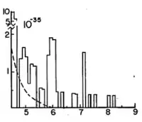 The original publication was based on an apparent peak (resonance) in a histogram of the invariant mass of electron-positron pairs produced by protons colliding with a stationary beryllium target, implying the existence of a particle with a mass of 6 GeV which was being produced and decaying into two leptons. An analysis showed that there was "less than one chance in fifty" that the apparent resonance was simply the result of a coincidence.[1] Subsequent data collected by the same experiment in 1977 revealed that the resonance had been such a coincidence after all.[2] However, a new resonance at 9.5 GeV was discovered using the same basic logic and greater statistical certainty,[3] and the name was reused (see Upsilon particle).
