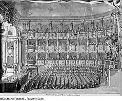 The Opernhaus am Zwinger (Opera house at the Zwinger) was a theatre in Dresden, Saxony, Germany, opened in 1719. The architect of the Zwinger, Matthäus Daniel Pöppelmann, was also responsible for the opera house situated next to its south-western pavilion. The building replaced the first opera house of Dresden, the Opernhaus am Taschenberg, which was transformed to a church.[1]