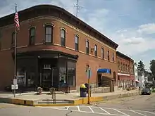 The first commercial brick building to be constructed in the main business district was the Central House, which operated as a hotel from its construction during the 1860s until its conversion to a single family residence in the 1930s. All other buildings were erected around Central House, which was specifically located and designed to be the center piece of downtown Orangeville.[5] The People's State Bank was the last major commercial building constructed in historic downtown Orangeville.[7] In 1932 People's State Bank closed its doors. In 1956 Community Bank of Orangeville opened for business in the downtown area. In 1980 Community Bank moved to the current church street location on the south end of town. Community Bank of Orangeville is the village's only operating bank.