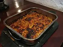 Traditionally very common are various forms of potato pancake (Kartoffelpuffer) which may be served as sweet or savoury main courses as well as an accompaniment to meat. These especially include: