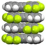 Packing in a crystal pentafluorotolan (C6F5CCC6H5), illustrating the donor-acceptor interactions between the fluorinated and nonfluorinated rings.[3]