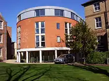 Bordered by the Cowley Road, this site was formerly Nazareth House, a residential care home convent — Goldie Wing (shown left) and Larmenier House are its surviving buildings. Nazareth House itself was demolished to make room for two purpose-built halls of residence, James Mellon Hall (shown right) and David Paterson House. The two new halls were opened by Queen Elizabeth II on 8 November 2000.[48]
