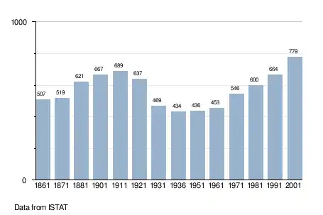 - ↑ "Popolazione Residente al 1° Gennaio 2018". Italian National Institute of Statistics. Retrieved 16 March 2019.