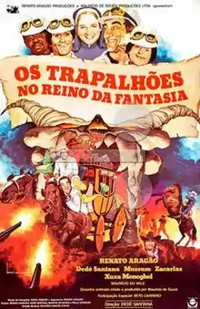 Os Trapalhões no Reino da Fantasia (English: The Bumbling in the Kingdom of Fantasy) is a 1985 Brazilian live-action/animated film, directed by Dedé Santana and starring by Os Trapalhões. The animation was produced by Mauricio de Sousa Produções, known for Monica's Gang comics and animation.