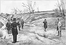 In November 1878, Fourtou participated in the most laughable duel ever fought with Léon Gambetta at Plessis-Picquet. Both duelers were accompanied by their seconds and surgeons. A thick French November fog consumed the field so much that it obscured a hand held to a face. The duel required thirty-five paces between the two men. Besides the fog, Fourtou is reported to have said "Monsieur Gambetta has but one eye, and I am short-sighted; so the game will be about even." It was rendered additionally even with the dense fog. The danger of the duel no longer fell to the duelists, but the spectators and doctors. Miraculously the two bullets that were exchanged missed all persons in attendance. With Fourtou and Gambetta's honor satisfied, the two parties went home.[4]