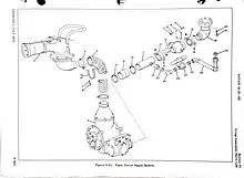 The MB-5 featured 4-wheel drive, with no-slip differentials on the rear axle. The Marine Corps variants of the truck featured no-slip differentials on the front axle assembly as well. The full floating axles sat on leaf spring suspension, mounted to both the front and rear of the frame.[3] While unloaded, the truck's suspension was quite rigid; and there was even a noticeable tilt to the left side which compensated for the extra weight when the water tank was full.