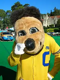 Oski the Bear (Oski) is the official mascot of the University of California, Berkeley ("Cal"), representing the California Golden Bears. Named after the Oski Yell,[1] he made his debut at a freshman rally in the Greek Theatre on September 25, 1941.[2][3] Prior to his debut, live bears were used as Cal mascots.[4]