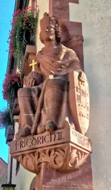 - 1951: Frederick II, Holy Roman Emperor, Außenfigur am Rathaus Annweiler