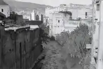 The Oued Bou Khrareb is crossed by several historic bridges inside the medina, some of which were first built before the unification of the two shores into a single city in the 11th century.[8] There were once at least six bridges, reportedly built by the Zenata emir Dunas ibn Hamama in the early 11th century, before the unification of the two cities by the Almoravids later in the same century.[9][1][8] Other scholarly sources, however, attribute at least some of the bridges to the Almoravid period (late 11th to early 12th centuries) when the two early cities of Fes were unified.[3] Many of them were destroyed in subsequent floods in the early 14th century, and only some of them were rebuilt by the Marinid Sultan Abu Sa'id at the time.[9]
