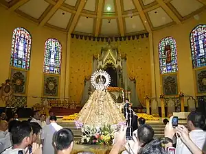 ![]() The image enshrined at the main altar of Santo Domingo Church in Quezon City during the month of October. | |