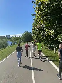Outdoor fitness boot camps developed in Australia, the United States and the United Kingdom in the 1990s and Canada in 2001.[9] In the twenty-first century, outdoor fitness grew as a commercial consumer market. Outdoor group fitness classes led by a personal trainer or a fitness professional became a popular form of outdoor exercise.[10][11] A variety of training courses for fitness professionals and certifications for companies specialising in outdoor fitness developed.[12][13][14] Outdoor fitness can be studied as a specialism of exercise physiology.[15] The trend towards outdoor fitness led to a proliferation of outdoor gyms.[16][17]