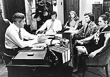 ![]() Marshall (Arthur Hill) with clients. From left: Michael Witney, Sharon Gless, John Davidson, Louise Sorel, 1972. | |