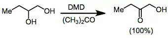 Dioxiranes oxidize primary alcohols to either the aldehyde or carboxylic acid;[18] however, DMD selectively oxidizes secondary over primary alcohols. Thus, vicinal diols may be transformed into α-hydroxy ketones with dioxirane oxidation.[19]