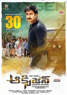 Oxygen is a 2017 Indian Telugu-language action thriller film directed by A. M. Jyothi Krishna and produced by S. Aishwarya on Sri Sai Raam Creations banner. The film stars Gopichand, Raashi Khanna and Anu Emmanuel, while Jagapathi Babu, Shaam, Brahmaji, Nagineedu, Abhimanyu Singh, Chandra Mohan play supporting roles. The music was composed by Yuvan Shankar Raja, while the cinematography and editing were handled by Chota K. Naidu-Vetri and S. B. Uddhav. The film marks the final appearance of Chandra Mohan before his death on 11 November 2023.