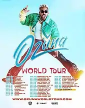 Ozutochi World Tour was the fifth concert tour by Latin musician Ozuna, to promote his fifth studio album Ozutochi. The tour began on June 30, 2022, and concluded on December 9, 2022.[1][2] The tour consisted on two legs and 37 concerts, which included several presentations on summer festivals in Europe, visiting countries such as Switzerland, Holland, Luxembourg, France, Italy, and Spain and an arena tour in the United States.[2]