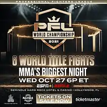 - ↑ Sherdog.com. "Full Lineup Announced for Professional Fighters League Championships on Oct. 27". Sherdog. Retrieved 2021-09-27.