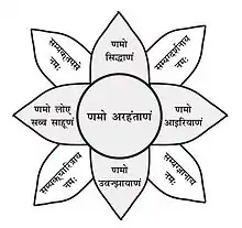 The Pañca-Parameṣṭhi , read as Pancha Parmeshthee (Sanskrit: पञ्च परमेष्ठी for "five supreme beings") in Jainism are a fivefold hierarchy of religious authorities worthy of veneration.[1][2]