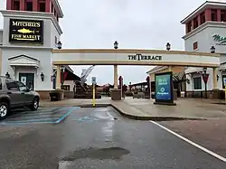 The shopping complex formally opened on November 1, 2001.[3] On May 21, 2013, a Louisville business journal reported that CPT Capital Management had purchased the center for $111.5 million, and that Wilkow would take over from Bayer as property manager.[4] Shortly after the sale, the new managers announced that the complex would be renamed via an online vote. Three choices were provided—Paddock Shops, Oaks Town Center, and Shops of Louisville—along with a write-in option.[1] On August 15, 2013, Wilkow announced that the winning name was Paddock Shops, with nearly 30% of the vote, and new signage was immediately installed.[5]