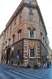 The early architectural history of the building is poorly documented. What is known is that in 1701, architect Carlo Francesco Bizzaccheri added the top floor.[4] However, the architect was either not working in his usual style or it has been subsequently altered, for the uppermost floor appears of no more architectural merit than those added to many other palazzi during the eighteenth and nineteenth centuries.[5]