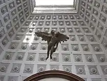 The Tribuna was also known as Antiquarium and originally housed more than one hundred and thirty ancient sculptures, among the finest of the collection. This extraordinary space, once closed on three sides, illuminated only from above and inspired by the Pantheon, was the fulcrum and the final destination of the itinerary along the rooms that precede it. The variety of sources of inspiration suggests a direct involvement of Giovanni Grimani himself in the design. The sculpture with the Abduction of Ganymede, hanging in the center of the room, is a Roman replica of a late Hellenistic model and has been relocated to its original position after the restoration of the building.