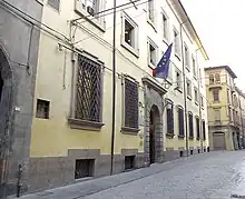 The Palazzo San Giorgio is a palace with a main facade located on Via Farini #3, across from the church of San Giorgio in the historic center of the town of Reggio Emilia in Italy. it presently houses one of the properties of the town library: Biblioteca Municipale Panizzi.