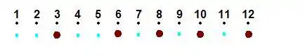 The palos under this classification are: seguiriya, cabales, serrana, livianas, and toná liviana. Although martinetes and other tonás are sometimes played with a seguiriya percussion, they are not included in this group. The only palo in this group to have a wide variety of estilos is the seguiriya. The livianas palo comprises only two songs, and the serrana and tona liviana only one song. All these palos follow a 12-beat pattern, with a different distribution of strong beats. However, we could also argue that it is the same rhythm as soléa, starting in a different beat: