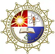 The Pamantasan ng Lungsod ng Maynila (PLM), also officially as the University of the City of Manila, is a municipal public university in Intramuros, Manila, Philippines. It is funded by the city government of Manila. The university was established on June 19, 1965, and opened on July 17, 1967, to 556 scholars, all coming from the top ten percent of graduates of Manila's public high schools.[2][3]