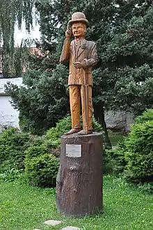 Wooden statue of Pan Tau in Třešť, hometown of actor Otto Šimánek
